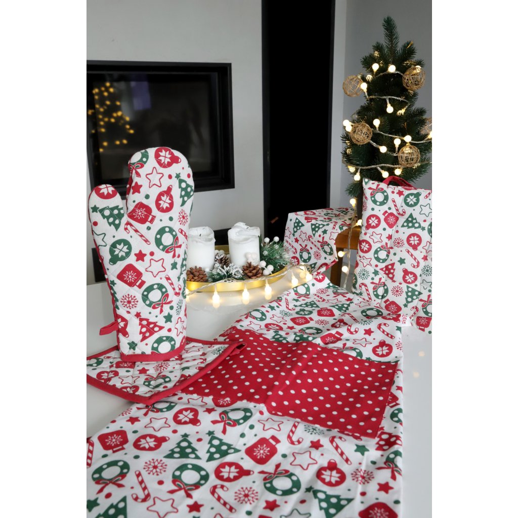 Szövet 3 darabos készletben a kávéfajták és feliratok motívumával ellátott kollekciónk része különböző kedvelt karácsonyi édességek. A harmonizáló konyhához további, azonos motívumú és színű konyhai textíliákat is beszerezhet webáruházunkból.