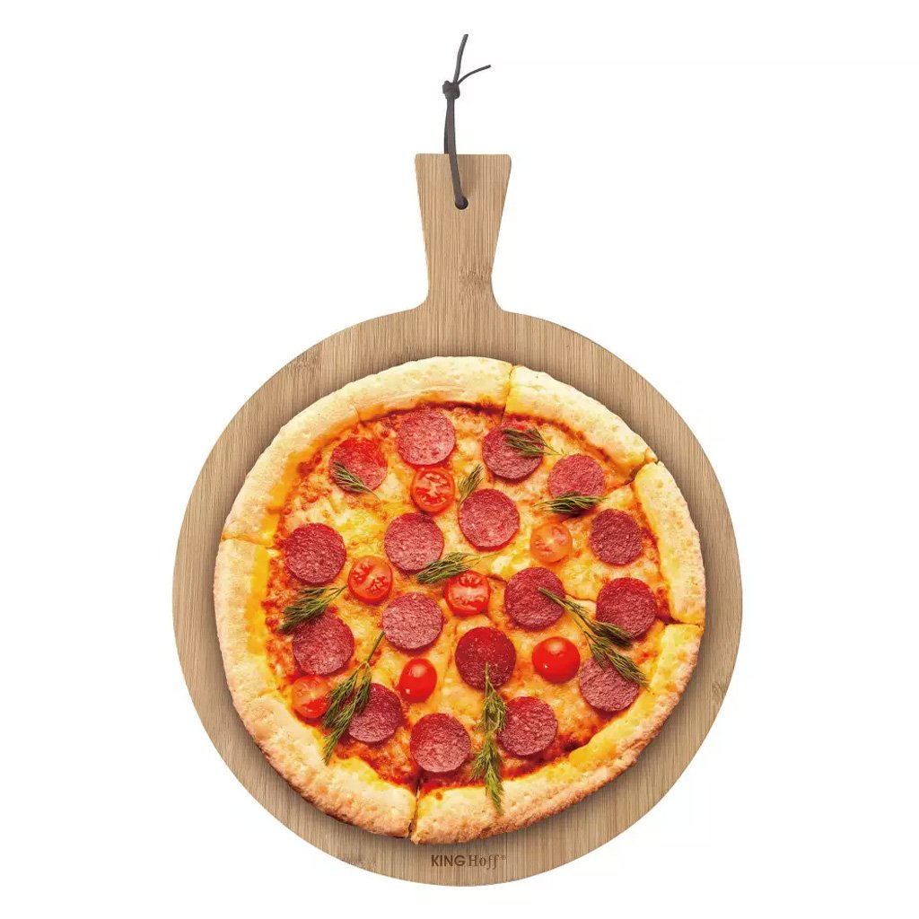 Tálalja kényelmesen a pizzát. Ezzel a bambusz deszkával igazán egyszerű. A pizzát közvetlenül a deszkán vághatja fel. Ezt lehetővé teszi a megfelelő, 30 cm átmérőjű felület.