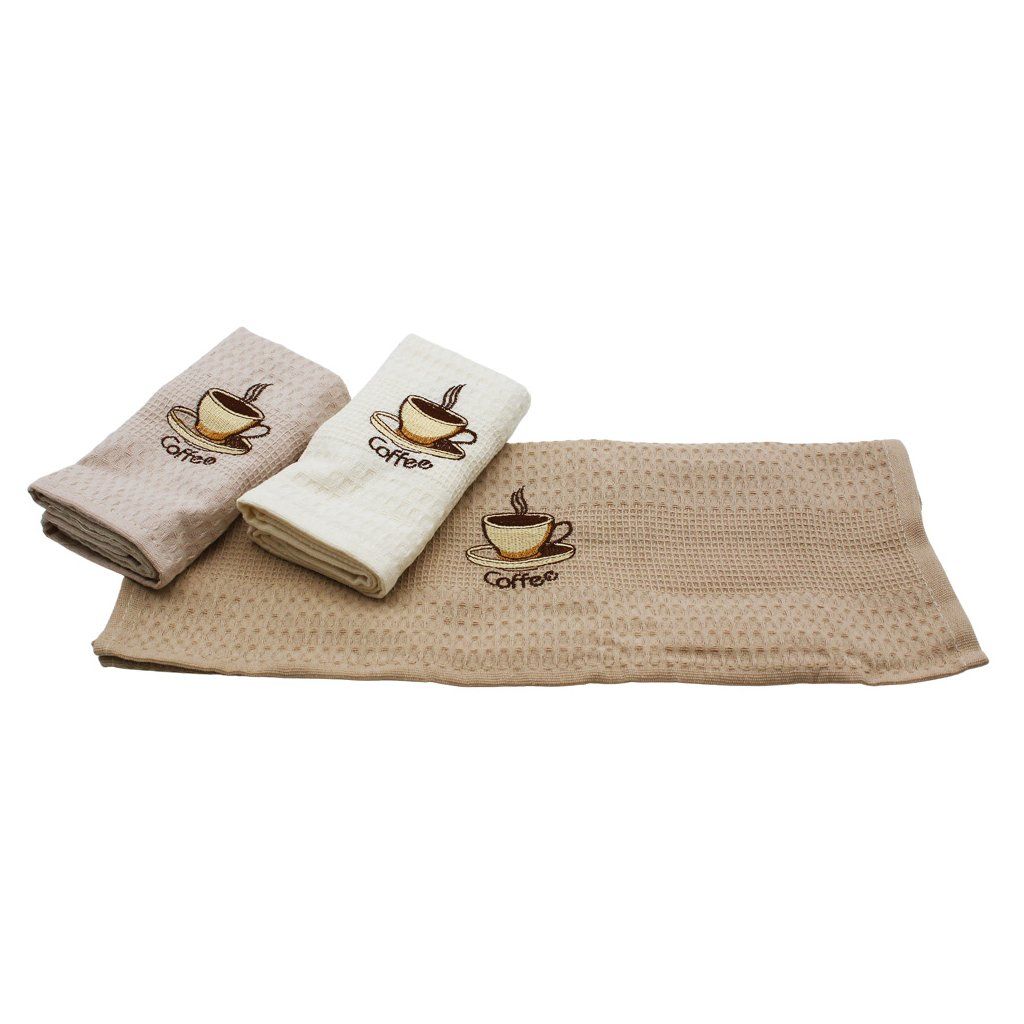 Minőségi pamut Coffee konyharuhák gofris kivitelben, kávéscsésze hímzéssel Színtartóak és nem hagynak szöszöket az edényeken. Jellegzetes gofris szerkezetüknek köszönhetően a törlőkendők többszörös mennyiségű nedvességet szívnak fel, mint más törlőkendők.