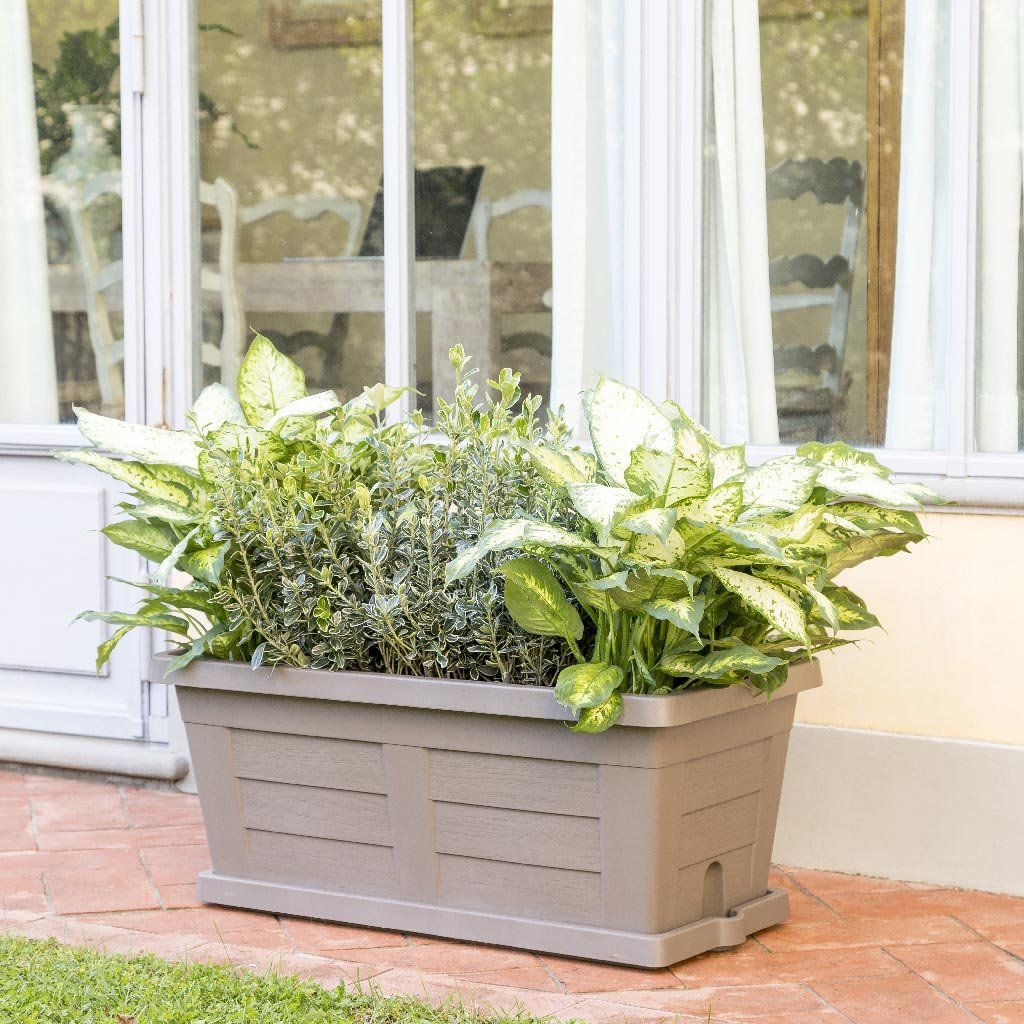 A LEGNO műanyag virágláda első pillantásra megragadja a lineáris dizájnjával és a fa hatású felületkezelésével. A virágláda elegáns stílusa egy olasz gyártótól BAMA nyilvánvaló.
