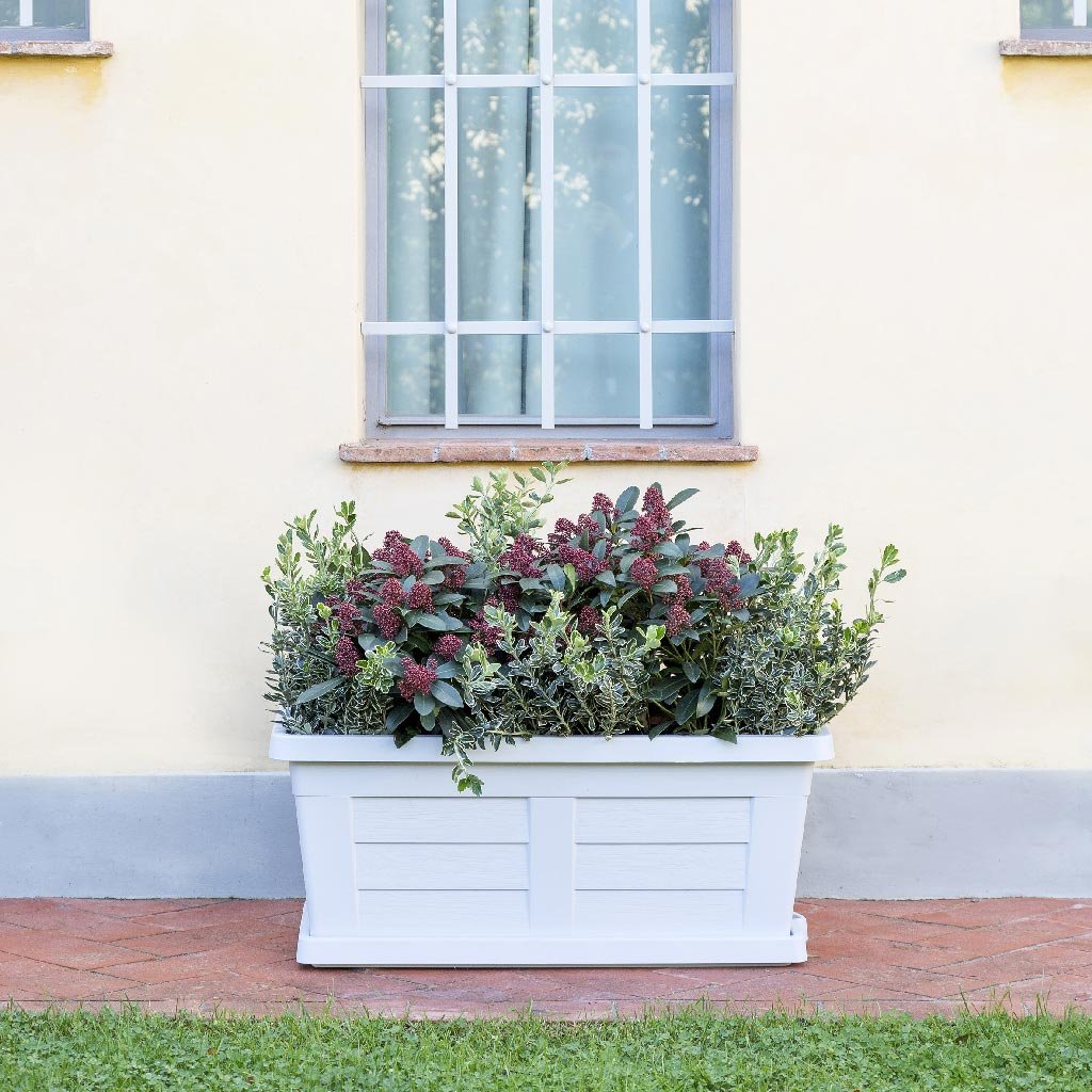 A LEGNO műanyag virágláda első pillantásra megragadja a lineáris dizájnjával és a fa hatású felületkezelésével. A virágláda elegáns stílusa egy olasz gyártótól BAMA nyilvánvaló.