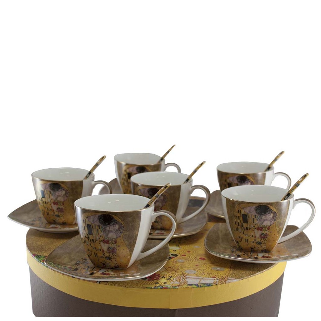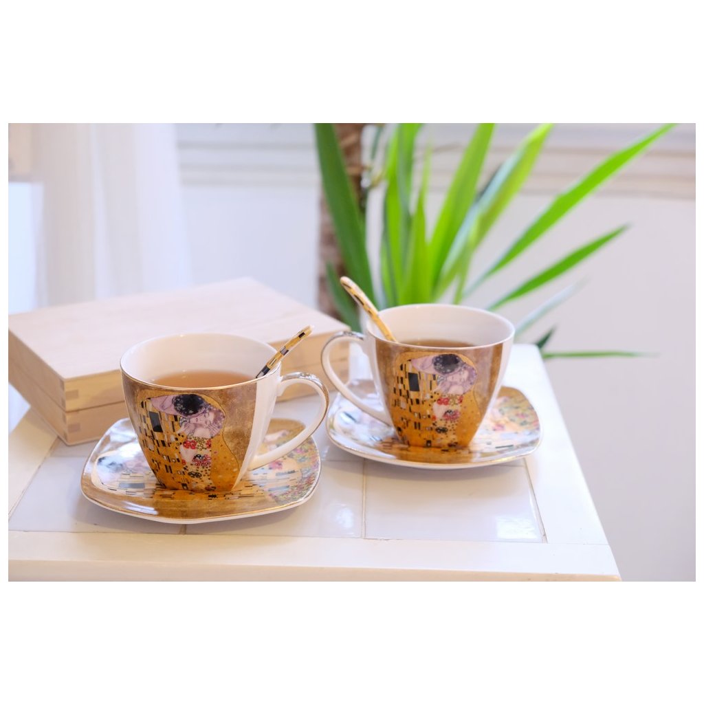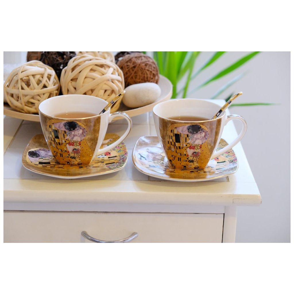 Luxus porcelán készlet teához vagy kávéhoz. A készletet a híres osztrák festő, Gustav műhelyéből származó dekoráció díszíti Klimt finom arany színben. Nagyszerű ajándék a művészet szerelmeseinek és mindazoknak, akik szeretnek egy gyönyörű csészéből kávét vagy teát fogyasztani.