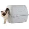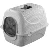 A felhajtható elülső fedél bejáratként szolgál. AA felső részben aktív szénszűrő található a szagok ellen, valamint egy zacskótartó. Itt található még egy beépített praktikus lapát a toalett alom cseréjéhez, amely egyben fogantyúként is funkcionál a toalett hordozásához.