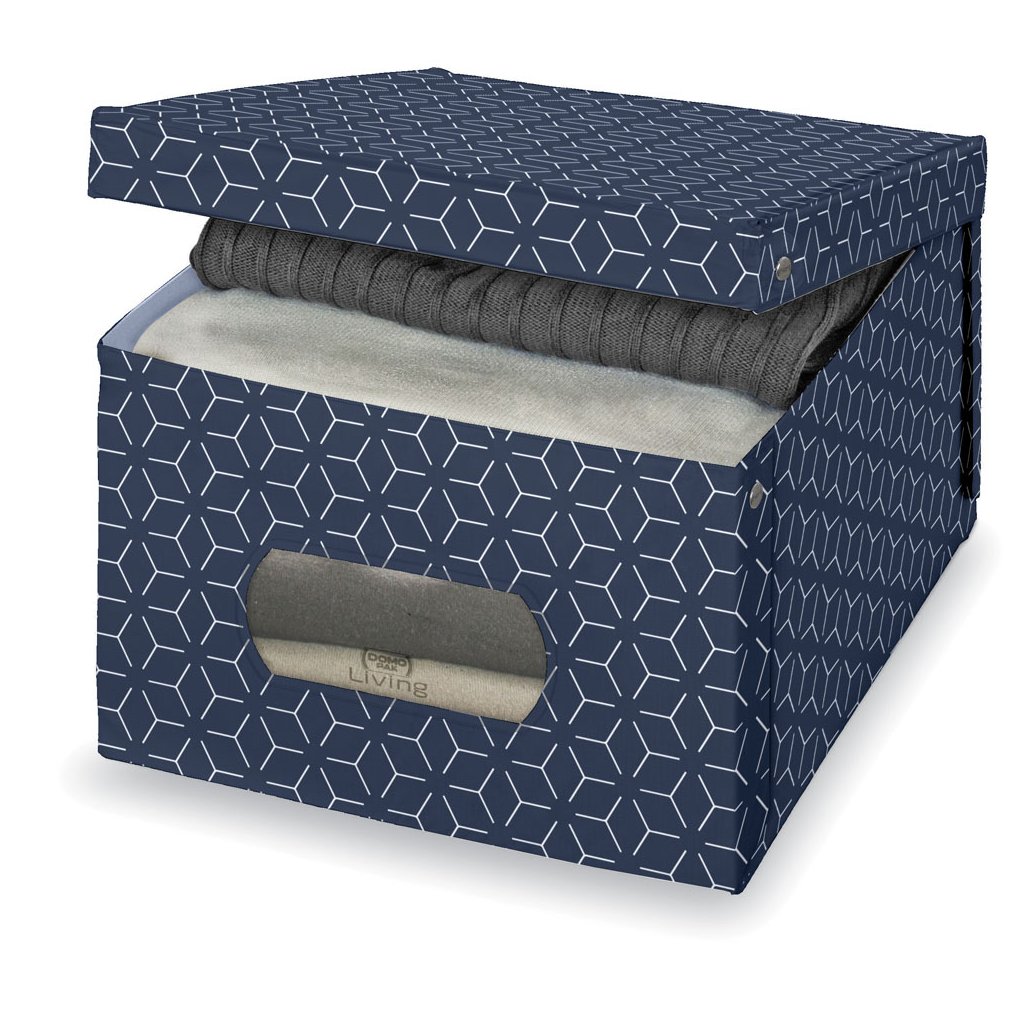 Metrik tárolódoboz ruhákhoz fedővel, kartonból, mérete 39 x 50 x 24v cm, sötétkék.