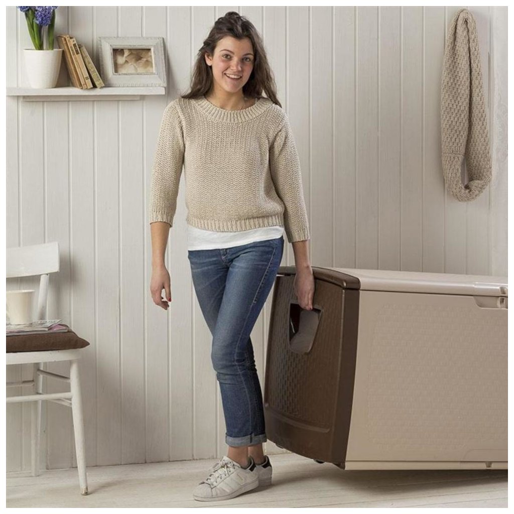 Kiváló minőségű, robusztus műanyag tárolódoboz rattan dizájnnal, egy olasz gyártótól BAMA. Ideális beltéri és kültéri használatra, oldalsó fogantyúkkal és kerekekkel a könnyű mozgatáshoz. Speciális hely a lakat behelyezéséhez (nem tartozék). Egyszerű, gyors összeszerelés szerszámok használata nélkül (csak 3 perc).