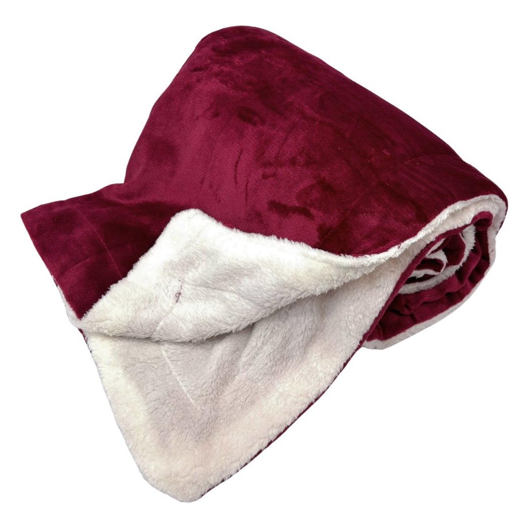 Az egyik oldala mélyvörös, a másik oldala fehér báránybőr hatású. Azt az oldalt takarja be, amelyik éppen szimpatikusabb. A takaró gyorsan felmelegít a kanapén pihenve vagy alvás közben, kellemes és nélkülözhetetlen a hűvösebb időszakban a teraszon, a kertben vagy a természetben ülve.