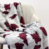 Puha, meleg és mégis könnyű mikroflanel takaró modern, jellegzetes, vörös-fekete folt mintával szürke alapon.