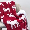 A báránybőrrel ellátott meleg és puha takaró minden háztartásba illik kiegészítőként, és nélkülözhetetlen a hidegebb időszakban. Felmelegít és hozzájárul a kényelméhez. A takaró piros alapon fehér jávorszarvasokból álló jacquard mintával rendelkezik. A báránybőr fehér színű.