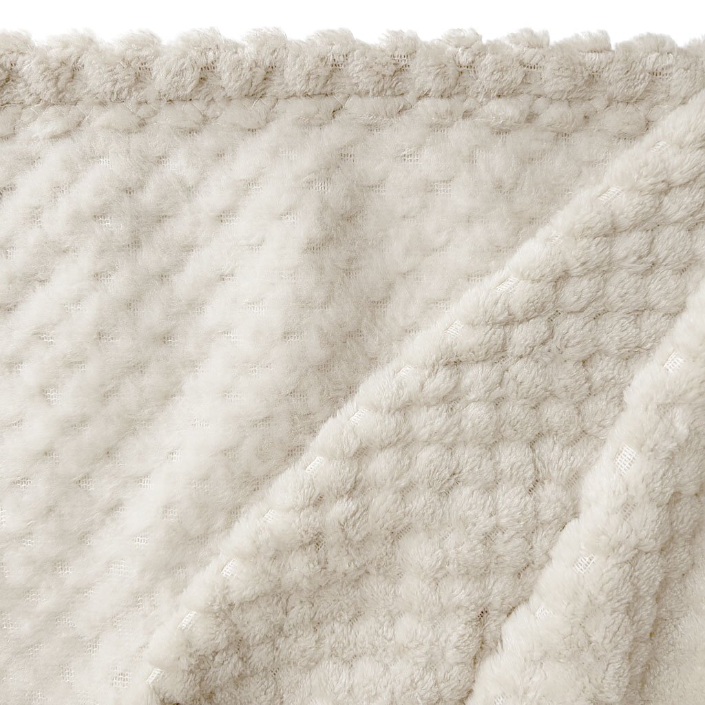 Pihenjen a puha és luxus minőségű mikroplüss takaróval tiszta fehér színben. A finom gofriminta diszkrét plasztikus hatást kelt, amely tiszta, légies és elegáns megjelenést kölcsönöz. A bársonyosan sima mikroszálas anyag kellemes tapintású, meleg és egyben könnyű – ideális a kanapén és az ágyban való pihenéshez, valamint időtálló kiegészítője a belső térnek.