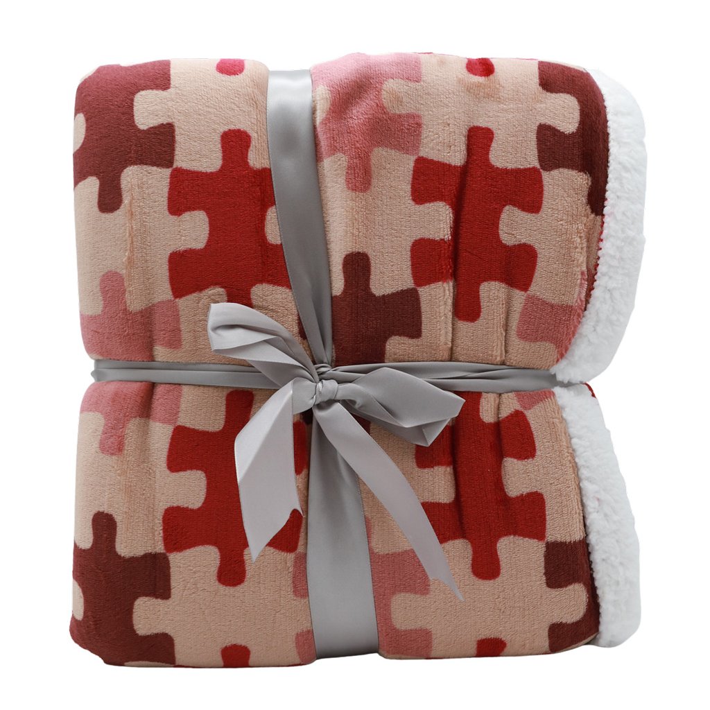 Meleg és puha bárány gyapjú takaró minden háztartásba illik kiegészítőként, és nélkülözhetetlen a hidegebb időszakban. Felmelegít és hozzájárul a kényelméhez. A takaró modern, puzzle mintával rendelkezik a piros különböző árnyalataiban. Ez nagyszerű ötlet karácsonyi ajándéknak is.