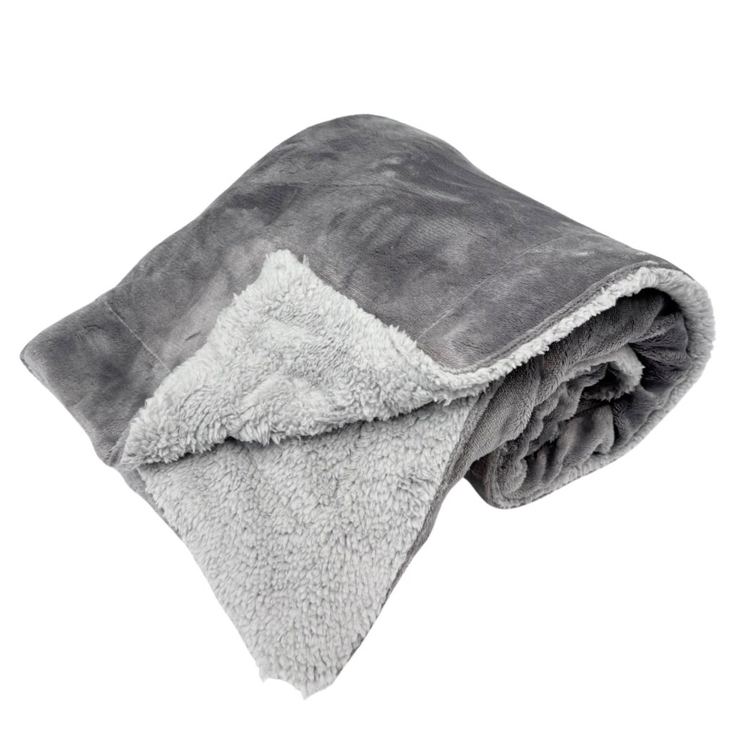 Az egyik oldala szürke, a másik oldala világosszürke báránybőr hatású. Azt az oldalt takarja be, amelyik éppen szimpatikusabb. A takaró gyorsan felmelegít a kanapén pihenve vagy alvás közben, kellemes és nélkülözhetetlen a hűvösebb időszakban a teraszon, a kertben vagy a természetben ülve.