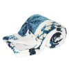 Ez a mikroflanel takaró vonzó kialakításával is kitűnik a kék-fehér tónusokban. A geometriai és ornamentális minták kombinációja elegáns és egyszerre időtálló hatást kelt, így könnyen illeszkedik a modern és a hagyományos belső terekhez is. A dekoratív elem dekoratívan hat a kanapén, a hálószobában és kiegészítőként a nyaralóban is.