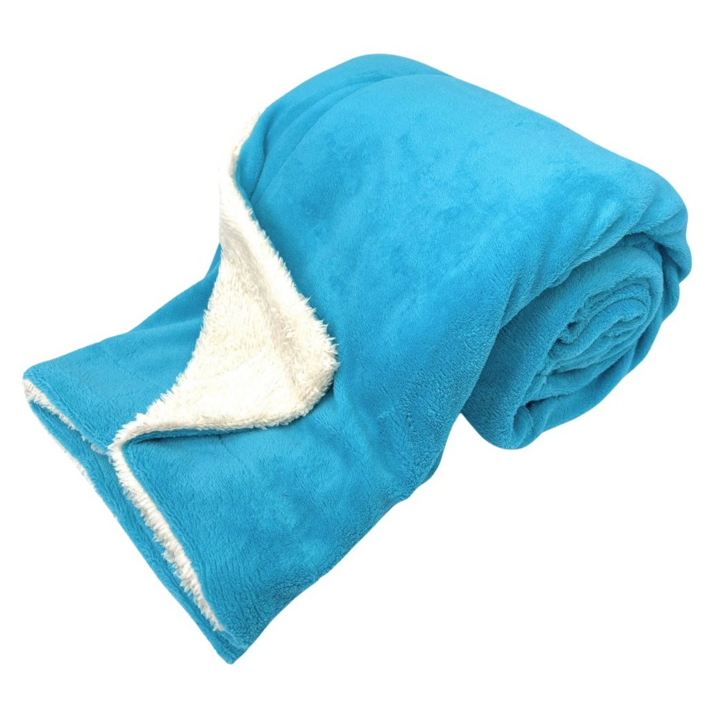 A takaró egyik oldala türkiz színű, a másik oldala fehér báránybőrrel van ellátva. Azt az oldalt takarja be, amelyik éppen szimpatikusabb. A takaró gyorsan felmelegít a kanapén pihenve vagy alvás közben, kellemes és nélkülözhetetlen a hűvösebb időszakban a teraszon, a kertben vagy a természetben ülve.