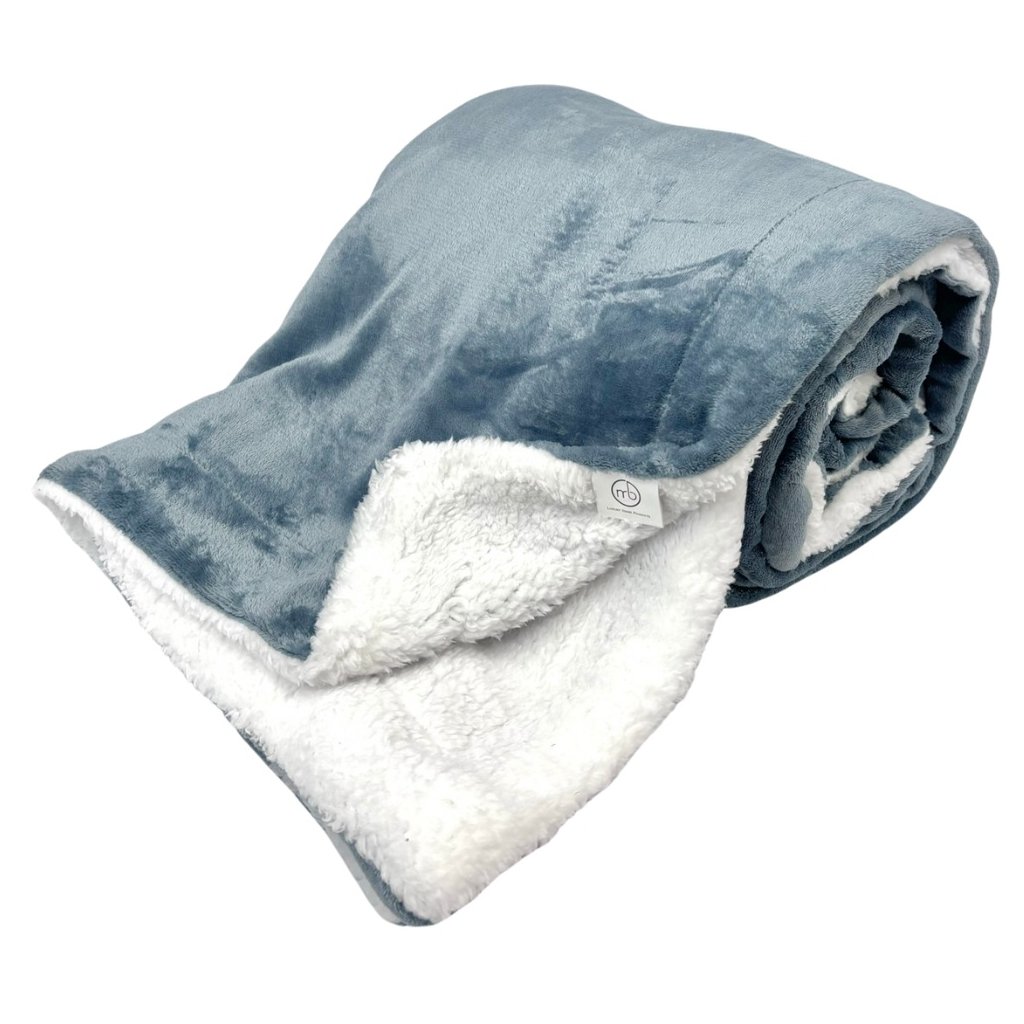 A takaró egyik oldala világoskék, a másik oldala fehér báránybőr. Azt az oldalt takarja be, amelyik éppen szimpatikusabb. A takaró gyorsan felmelegít a kanapén pihenve vagy alvás közben, kellemes és nélkülözhetetlen a hűvösebb időszakban a teraszon, a kertben vagy a természetben ülve.