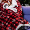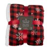 Mikroflanel takaró báránybőr hatással, Kockás mintával, hópihékkel, piros Home Elements