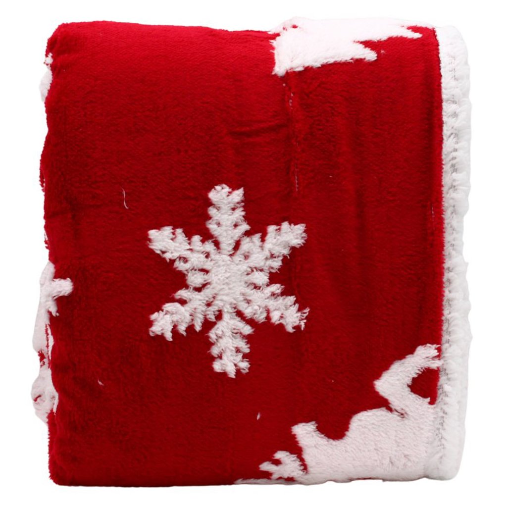 Meleg mikroflanel takaró báránybéléssel. Piros, téli jacqurd mintával. 150 x 200 cm