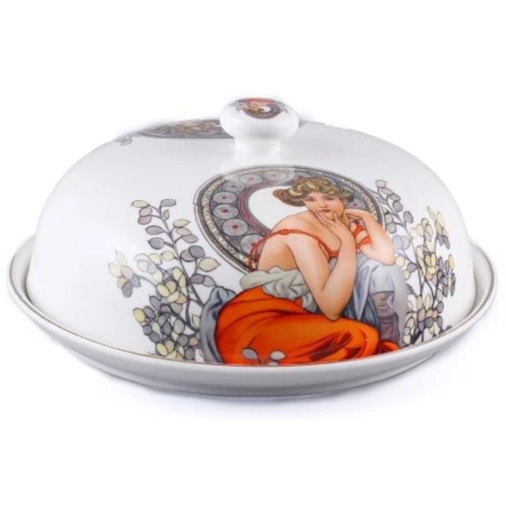 A fedővel ellátott tányér az Alfons Mucha kollekció része, A gyönyörű tálaláshoz egyszerűen összehangolhatja a kollekció többi termékével.