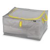 A csomagolás erős polipropilénből készült, vízálló és mosható. A felső cipzáros záródás biztosítja, hogy a tartalom biztonságban legyen, szennyeződéstől, portól és nedvességtől mentesen, a cipzár pedig könnyű hozzáférést biztosít. A sárga fogantyú és hurok segítségével kényelmesen kihúzhatja a csomagolást a szekrényből vagy a polcról, vagy áthelyezheti azt.