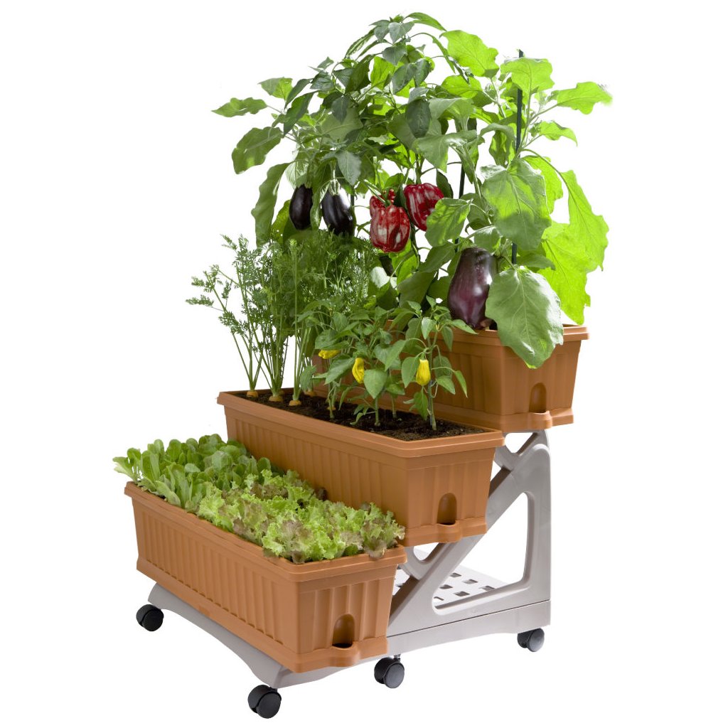 Zöldségeskert az erkélyen? Persze, az ORTO 3 virágtartó készlettel, 80 cm hosszúságban cm, amelyek közül az egyetlen három fokozatban fejlődik, hogy minden növény jobban ki legyen téve a napnak, és a padló fölé legyen emelve a jobb funkcionalitás érdekében.