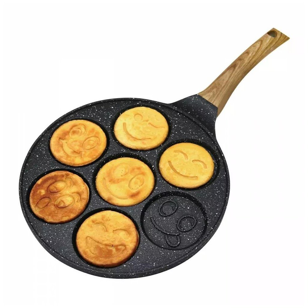 Palacsintasütő / Serpenyő 7 db smiley alakú palacsintához. Tapadásmentes márvány bevonat, a serpenyő átmérője 26,5 cm.
