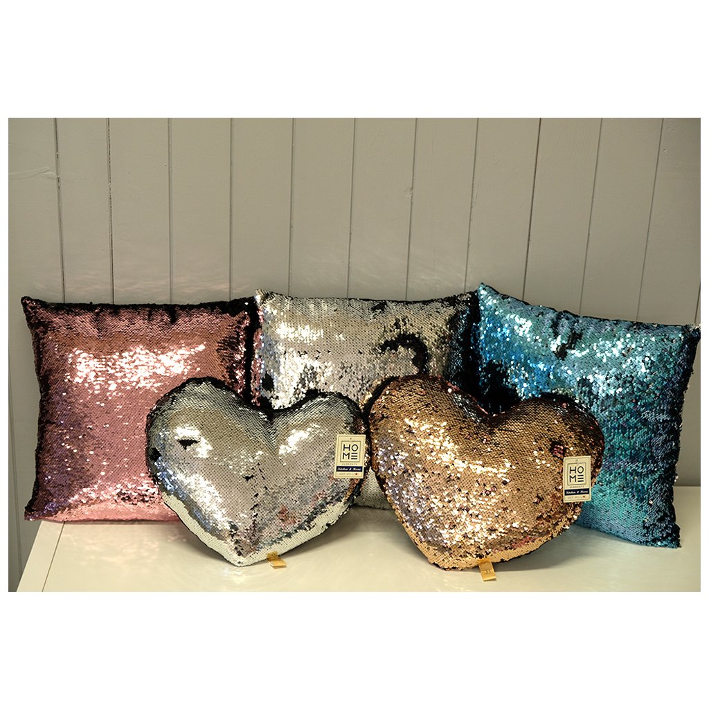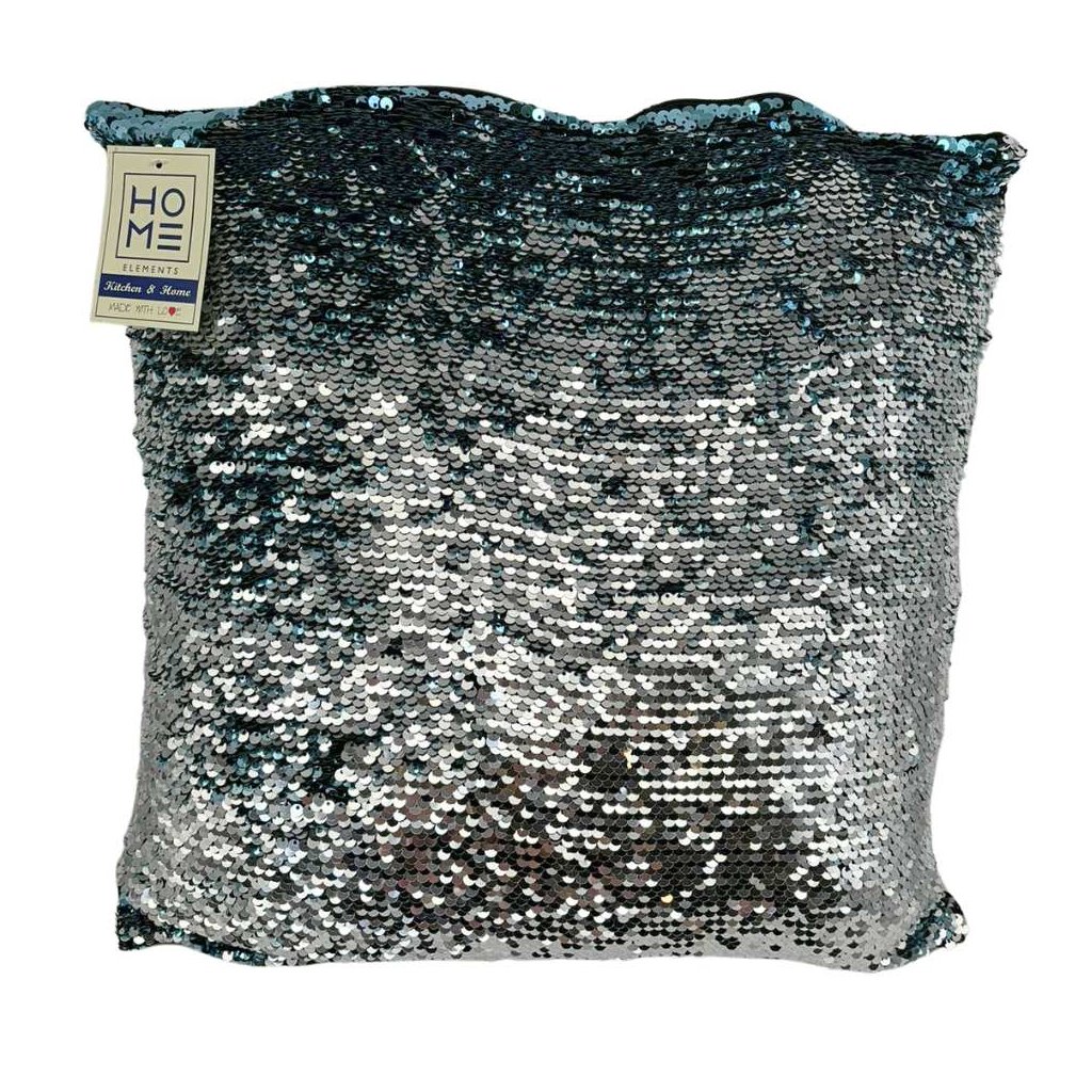 Kék-ezüst, nem hagyományos flitteres párna, amely örömet okoz, különösen azoknak, akik szeretik az ötletes ajándékokat. Például szépen feldíszíthetik vele a hálószobát.