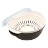 A COOKY edény alkalmas főzésre, kiolvasztásra és melegítésre közvetlenül a mikrohullámú sütőben, egyszerűen és gyorsan, zsír nélkül. A párolásnak köszönhetően a vitaminok és ásványi sók megőrződnek. A tágas edény párolóbetéttel van ellátva.