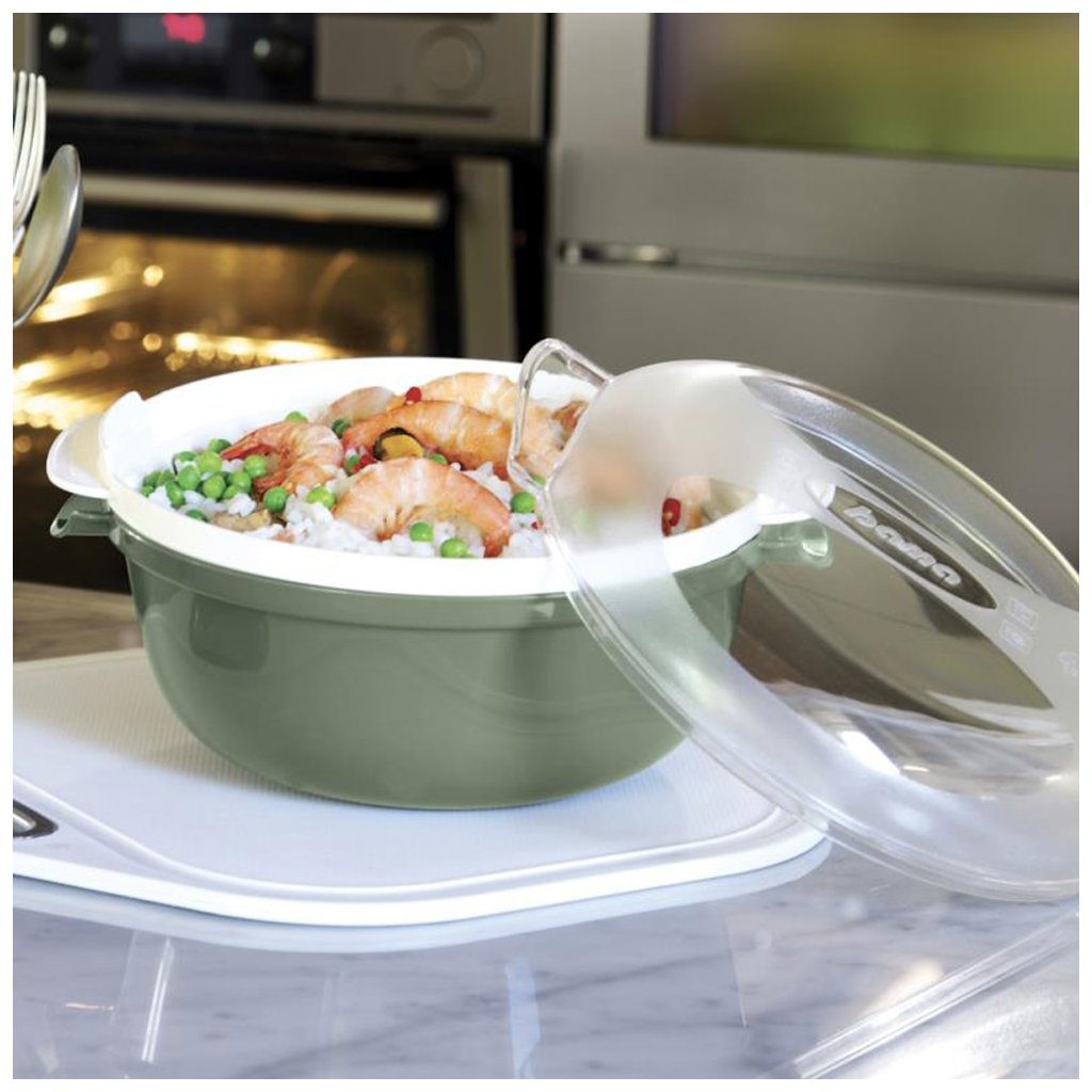 A COOKY edény alkalmas főzésre, kiolvasztásra és melegítésre közvetlenül a mikrohullámú sütőben, egyszerűen és gyorsan, zsír nélkül. A párolásnak köszönhetően a vitaminok és ásványi sók megőrződnek. A tágas edény párolóbetéttel van ellátva.