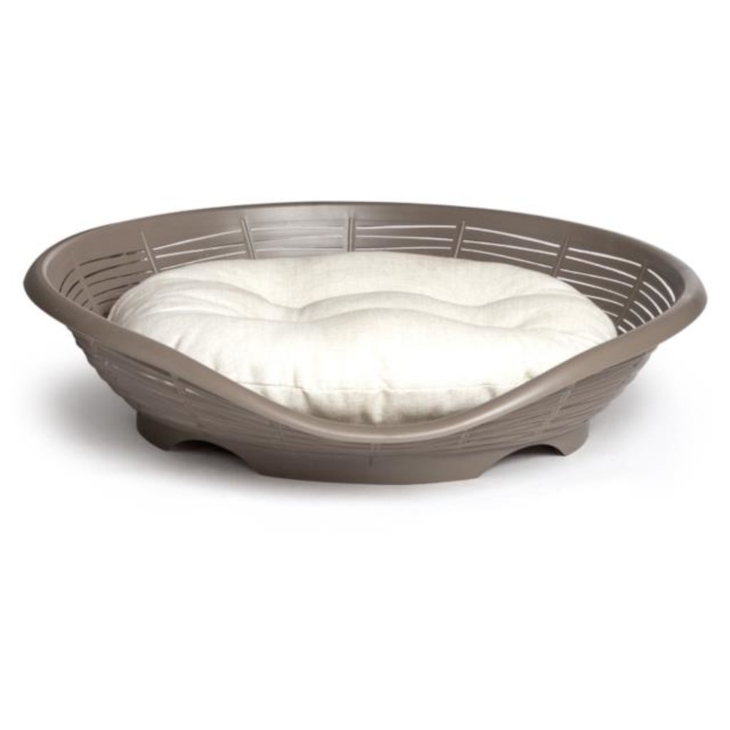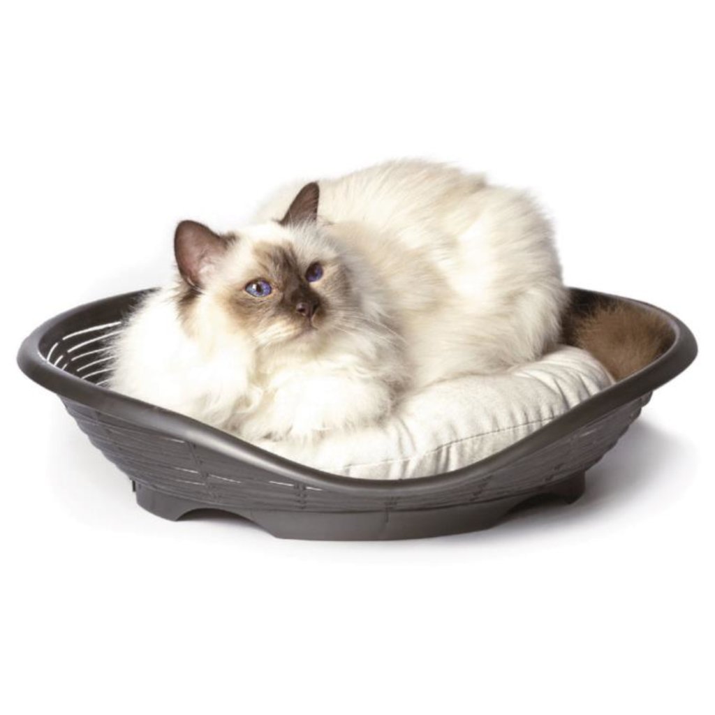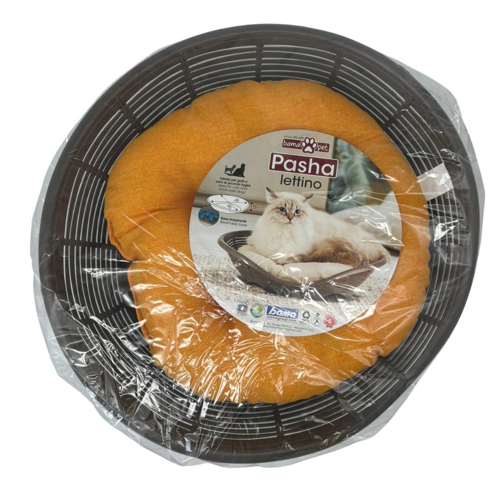 A PASHA műanyag fekhely ideális macskák és kistestű kutyák számára. Tartalmaz egy kényelmes párnát a légáteresztő alapon. EElegáns, rattan dekorációval ellátott fekhely az olasz gyártó cégtől. BAMA otthonának gyönyörű díszítőeleme is lesz.