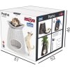 Elegáns, zárt kuckó a selyemgubó formájában, ahol kedvencei szívesen pihennek és bújnak el. Biztonságosan rögzíthet hozzá egy levehető, műanyag, párnás fekhelyet, vagy egyszerűen átalakíthatja kényelmes fotellé, ülőkével, maximum 70 kg teherbírással.
