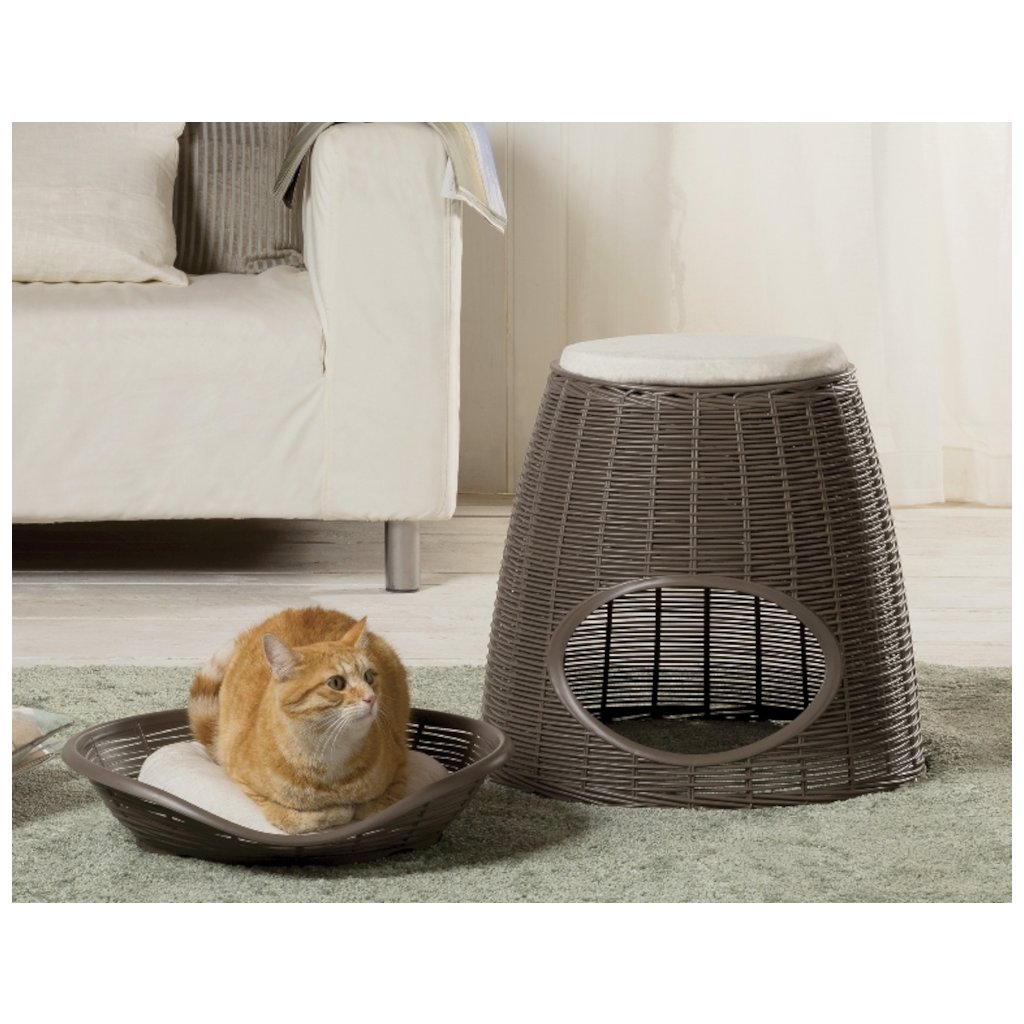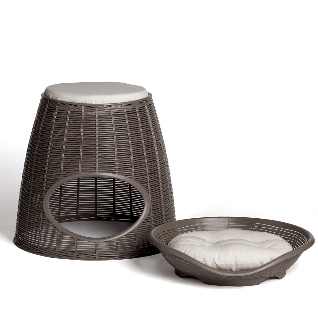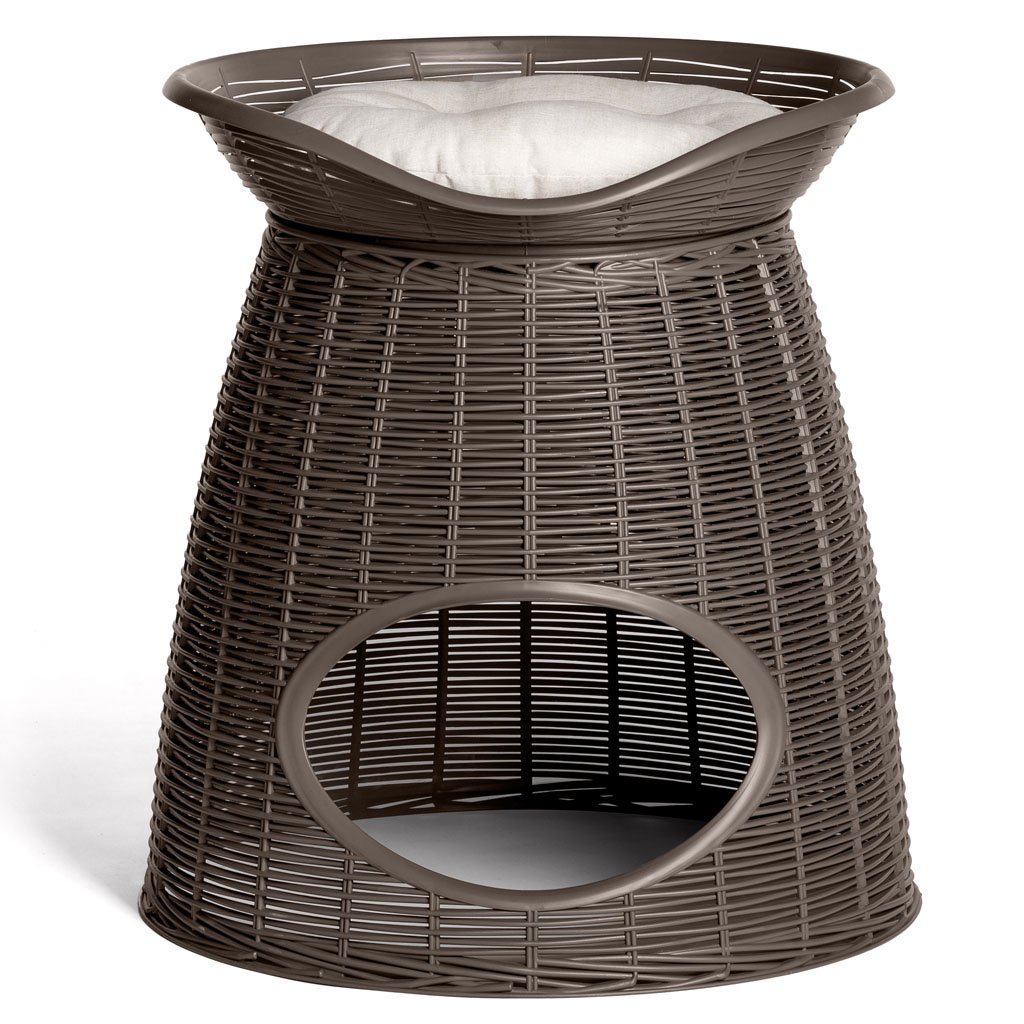 Elegáns, zárt kuckó a selyemgubó formájában, ahol kedvencei szívesen pihennek és bújnak el. Biztonságosan rögzíthet hozzá egy levehető, műanyag, párnás fekhelyet, vagy egyszerűen átalakíthatja kényelmes fotellé, ülőkével, maximum 70 kg teherbírással.