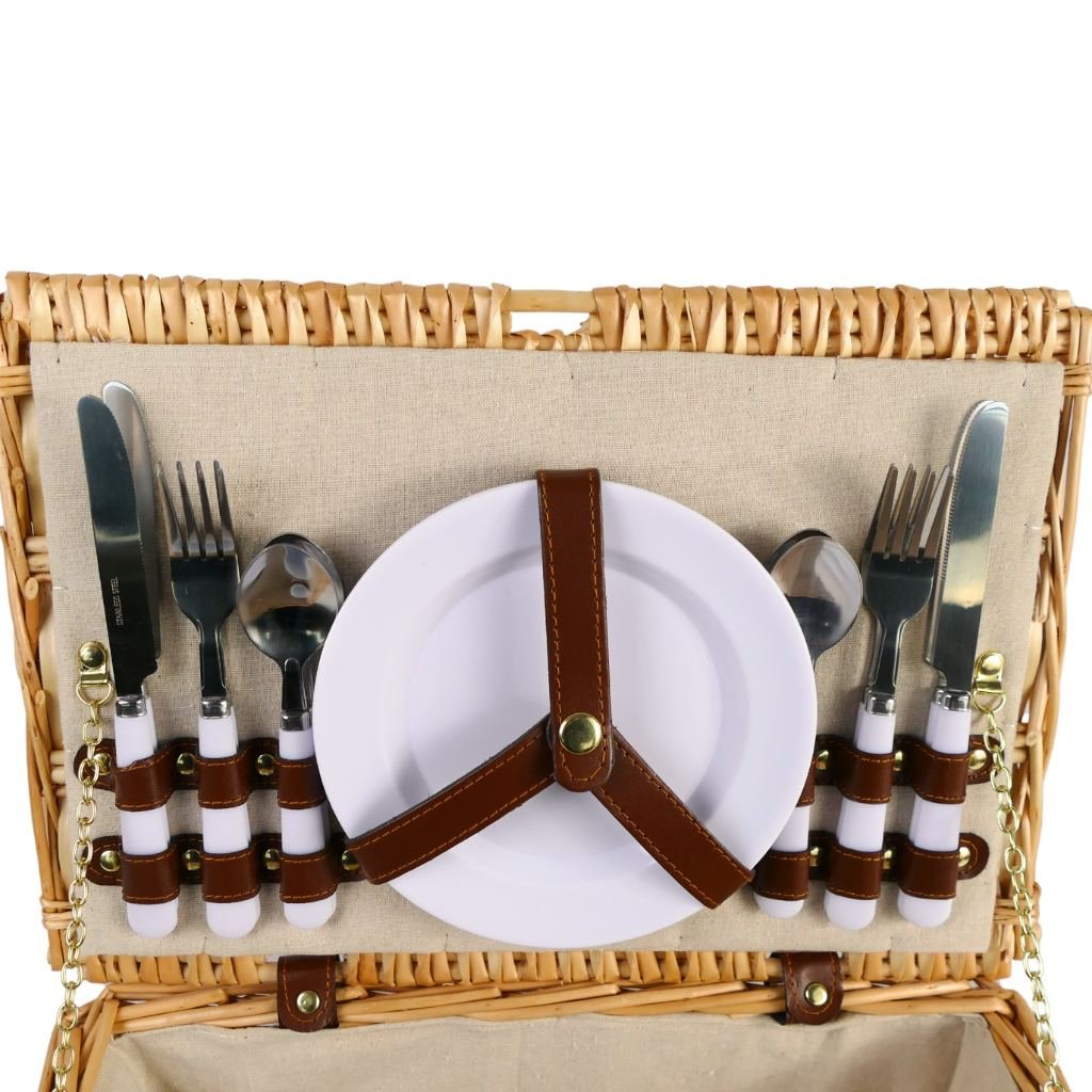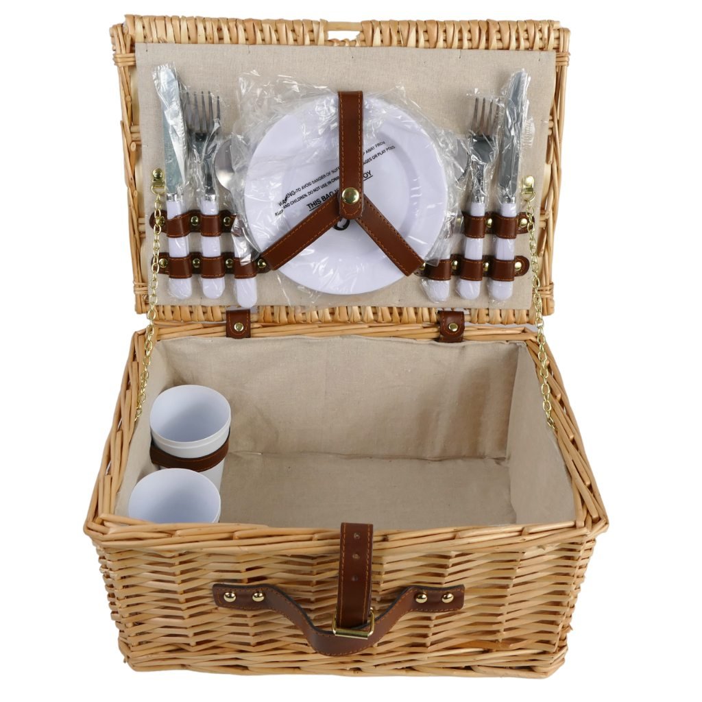 - Teljes felszerelés 4 személy részére: A kosár minden szükséges eszközt tartalmaz egy kényelmes piknikhez, beleértve négy tányért, négy evőeszközt és négy poharat. Mostantól kényelmesen ebédelhet a szabadban.