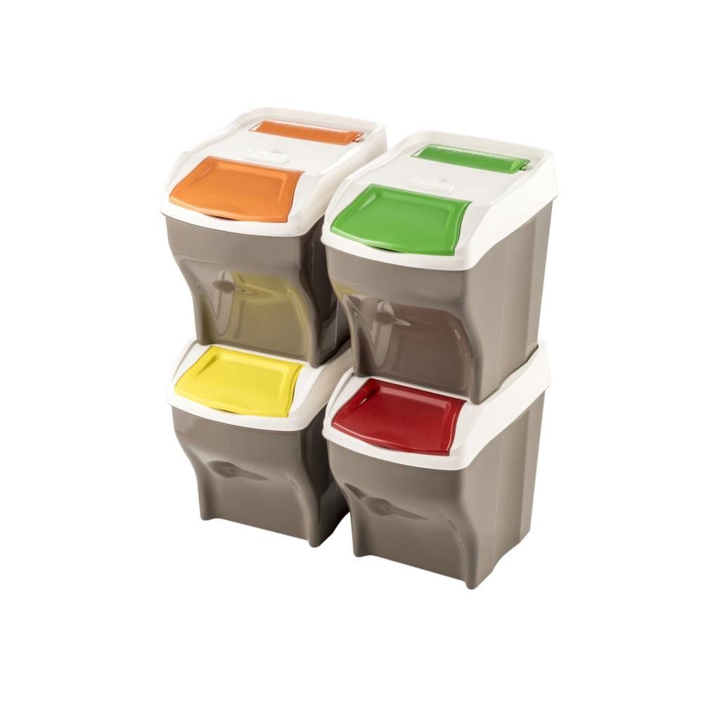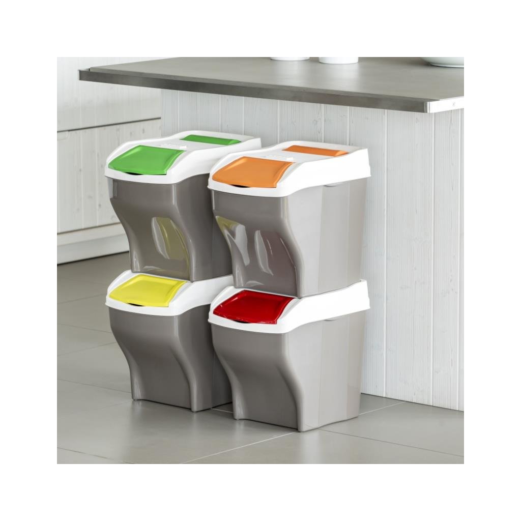 A négy, egyenként 27 literes műanyag kosárból álló, tökéletes összeállítás, a színesen megkülönböztetett fedőkkel a hulladék szétválogatásához, nagyban megkönnyíti a hulladék szétválogatását kis helyen, és segít a rend fenntartásában.