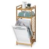 Ez a bambuszból készült, felhajtható szennyeskosár megkönnyíti és kellemesebbé teszi a mosást. A többszintű tárolópolcoknak köszönhetően elegendő helyet kínál háztartási eszközök, például fürdőszobai eszközök, higiéniai termékek és egyebek számára. A felhajtható kialakítás megkönnyíti a szennyes tárolását és kivételét, valamint könnyű hozzáférést biztosít a ruhákhoz. Érdemes megemlíteni azt is, hogy a szennyestartó kivehető a kényelmes ruhaszállításhoz, ami megkönnyíti a bambuszkeret tisztítását is. Alkalmas nappaliba, hálószobába, mosókonyhába, WC-be és fürdőszobába.