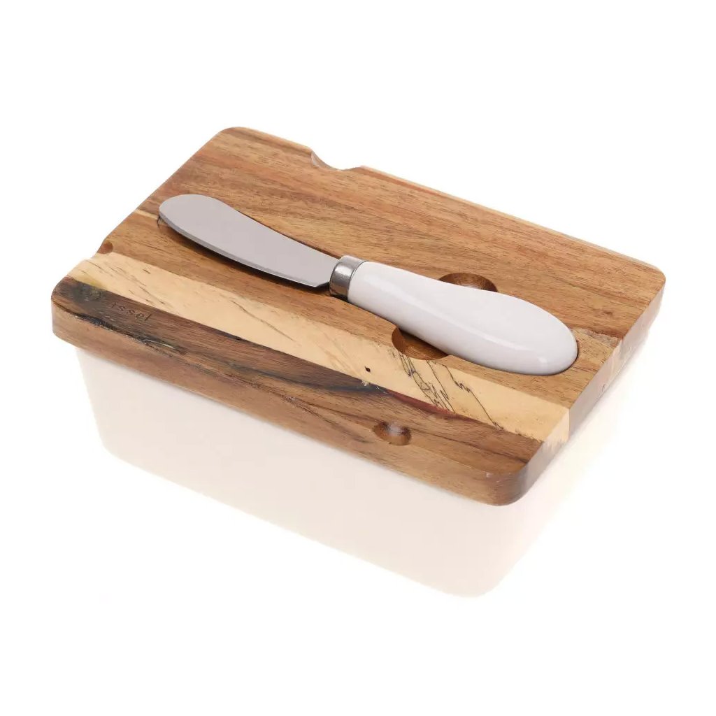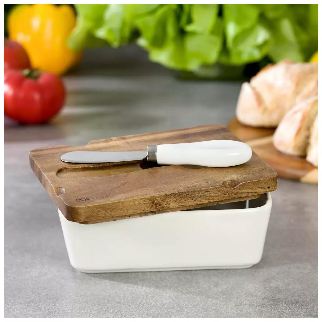 Tárolja a vajat és a sajtot elegánsan és higiénikusan a Klausberg dizájnos vajtartójával. Ez a stílusos tároló kiváló minőségű kerámiából készült, és természetes akácfa fedéllel van ellátva, amely segít megőrizni az élelmiszerek frissességét. A készlet tartalmaz egy vajazó kést is, amely minden tálalást élvezetessé tesz.