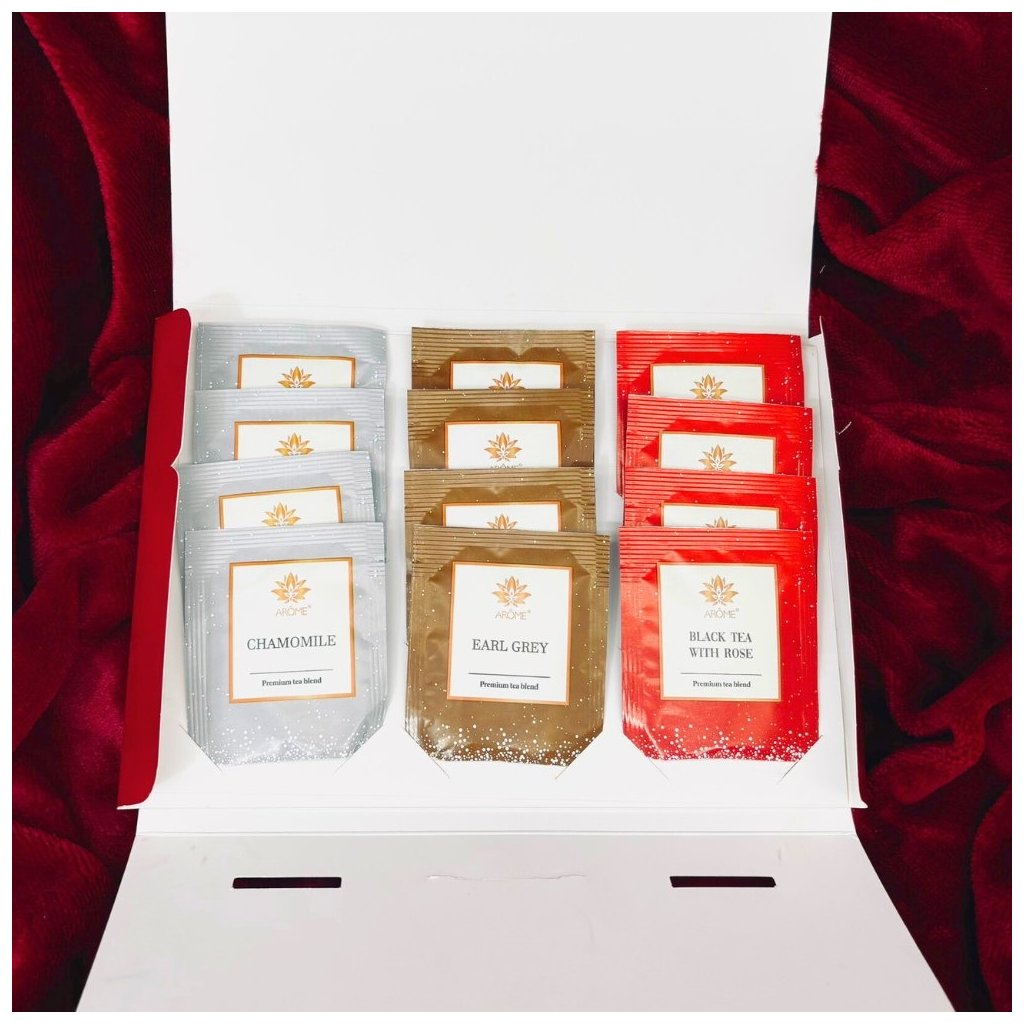 Prémium ajándék kollekció - Kamilla, Earl Grey, Fekete tea rózsával ARÔME