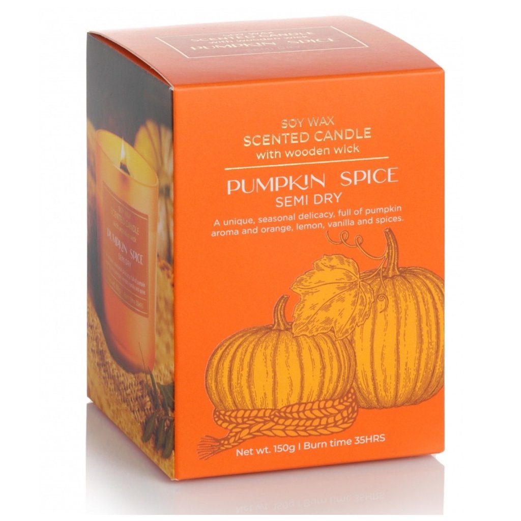 Minőségi PUMPKIN SPICE gyertya szójaviaszból, fa lapos kanóccal, amely képes utánozni a kandallóban ropogó fa hangulatát. Egyedülálló szezonális sütőtök aromát biztosít narancs, citrom, vanília és fűszerek illatával. A gyertya vibráló fénye a sütőtökpüré illatával ideális a takaró alatti lustálkodáshoz a borongós őszi estéken.