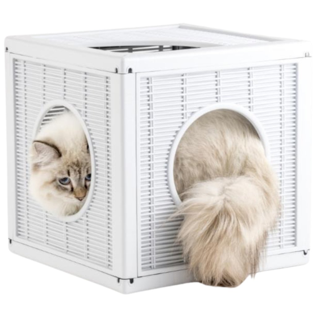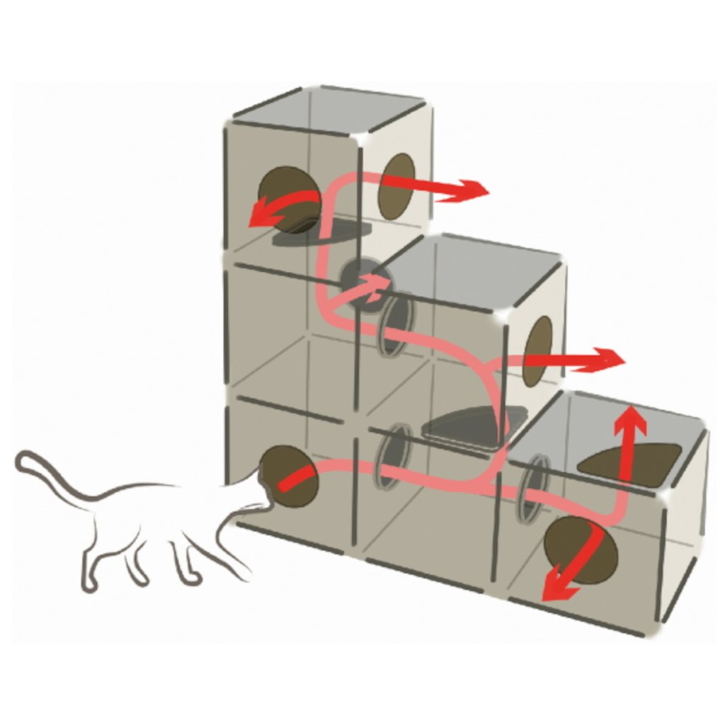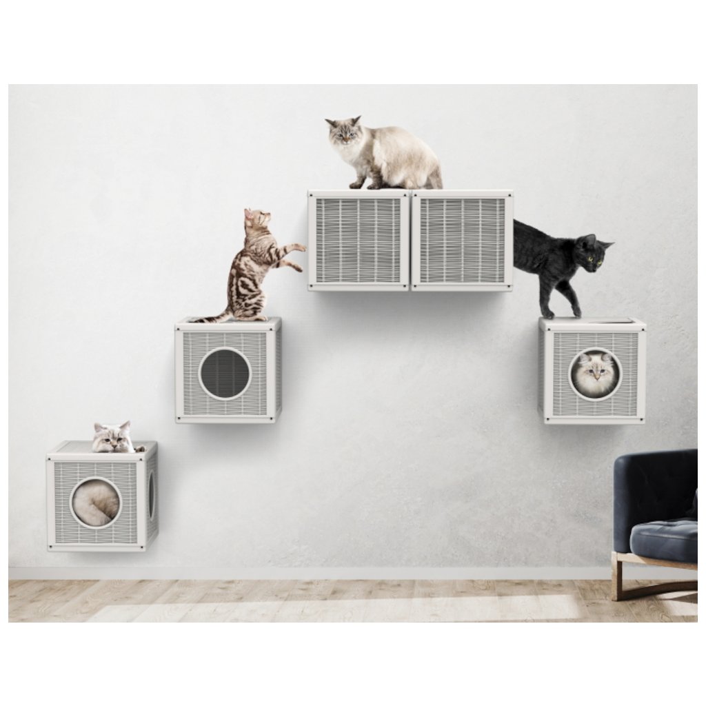 Kiválóan alkalmas stílusos mászókaként az energia levezetésére, valamint búvóhely és fekhely is, amely nyugalmat és a macska számára szükséges magánéletet biztosít. A QUBLO egy moduláris rendszer – használhat egyetlen kockát, vagy tetszőleges számút kombinálhat az igényeinek vagy ízlésének megfelelő összeállításba. Összeszerelve szállítjuk, az összeszerelés a mellékelt útmutató szerint néhány perc kérdése.