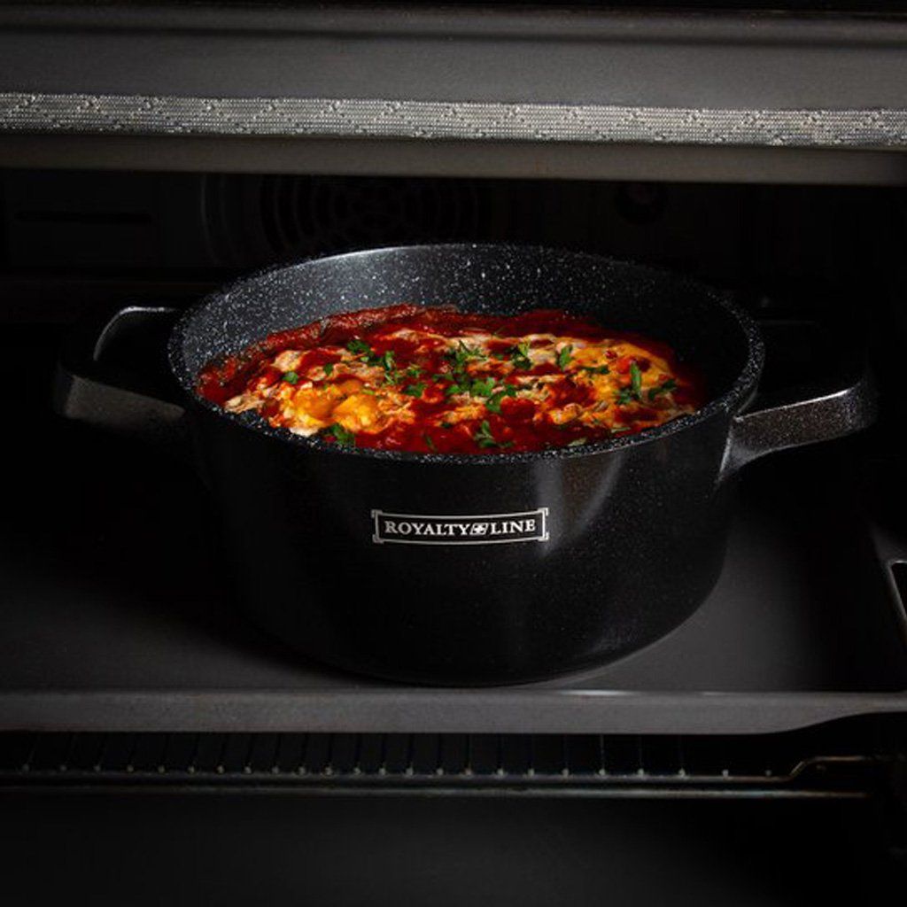 Konyhai edénykészlet ROYALTY gyönyörű, elegáns színben mindent tartalmaz a szokásos főzéshez. Három edény és egy fedővel ellátott serpenyő, két serpenyő és egy tartozékkészlet.