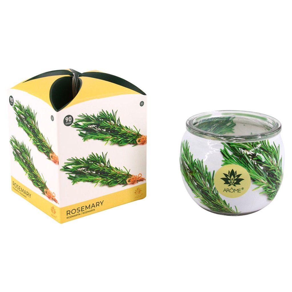 Dekoratív illatos gyertya üvegben, rozmaring illattal.Ez a aromás növény a mediterrán térségből egyszerre nyugtat és élénkít. Próbálja ki. Ugyanakkor a gyertya lángja gyönyörűen átillatosítja otthonát, és a gyertya szép dekoráció is lesz a belső térben.