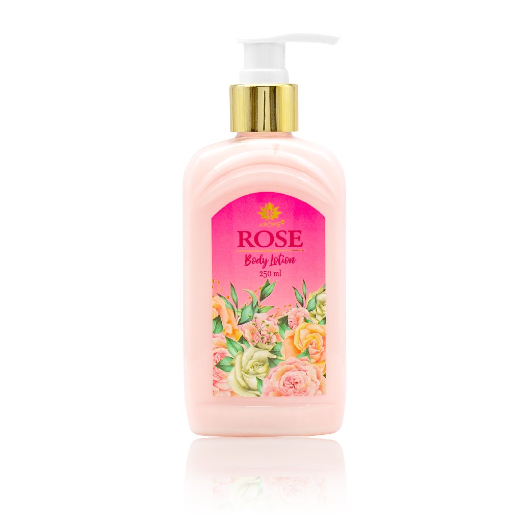 A rózsaillatú készlet fonott kosárba és celofánba van csomagolva. Ajándékozásra kész.
