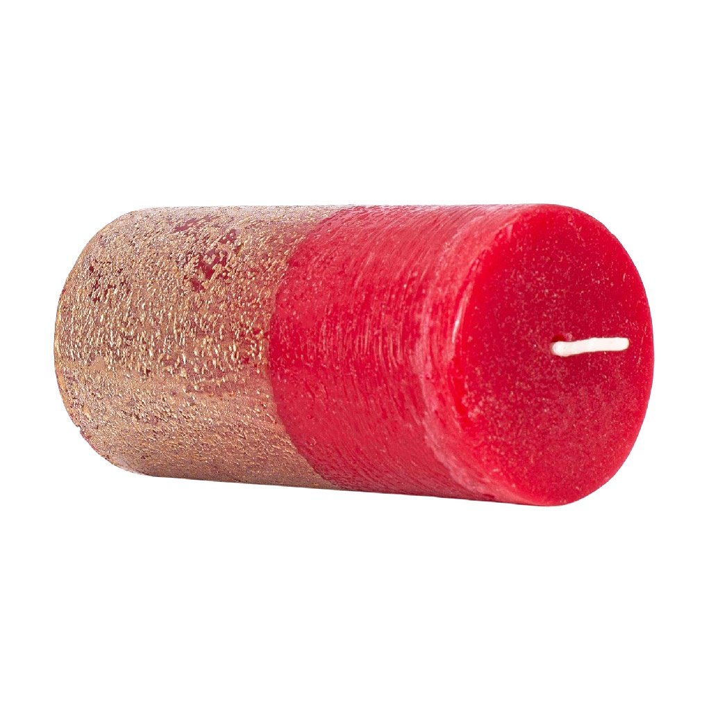 Rusztikus gyertya, metálpiros és arany ARÔME
