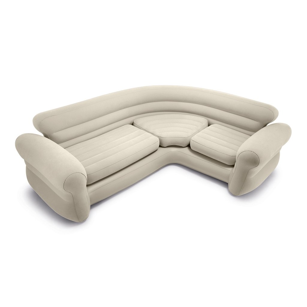 A kényelmes háttámlával és kellemes felülettel ellátott felfújható sarokkanapé kényelmet és időtlenséget kölcsönöz belső terének. INTEX márka.