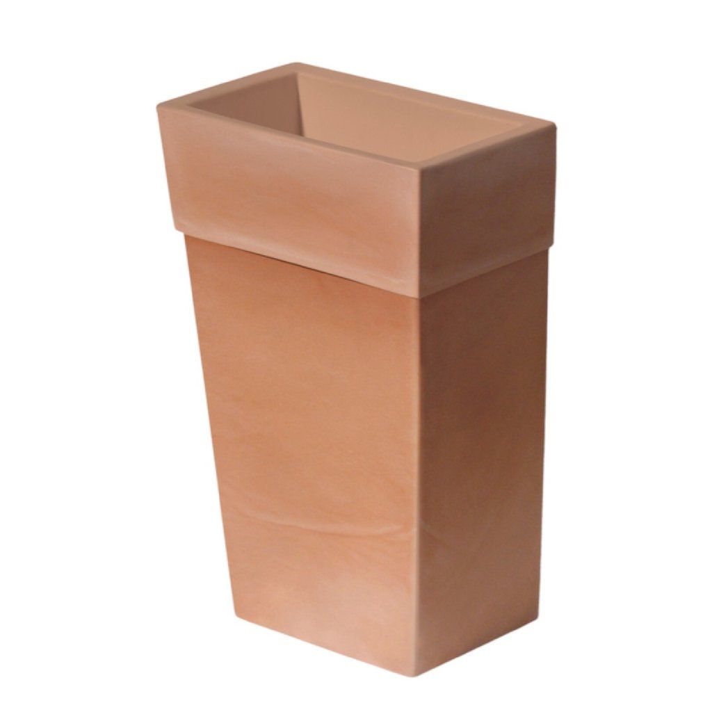 A barna, négyszögletes, nagyméretű virágcserép tiszta, egyszerű dizájnja az olasz BAMA gyártótól kiemeli az ültetett virágok vagy fák szépségét.