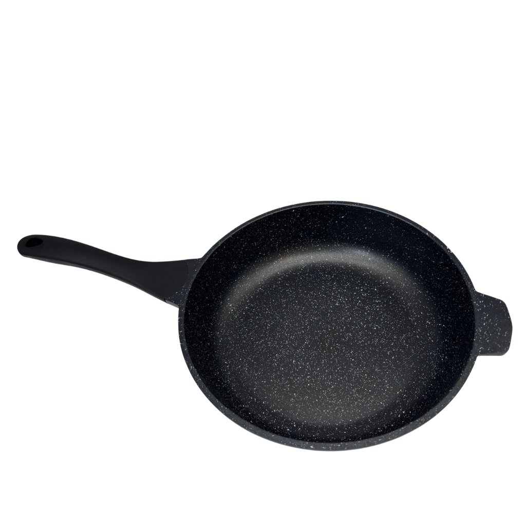A praktikus, sokoldalúan használható serpenyő minőségi öntött alumíniumból készült. A serpenyő belső része antibakteriális, tapadásmentes márvány bevonattal van ellátva, amely lehetővé teszi az egészséges főzést minimális mennyiségű olajjal. A serpenyő megerősített alja egyenletesen osztja el a hőt, és alkalmas minden típusú tűzhelyhez, beleértve az indukciósat is.