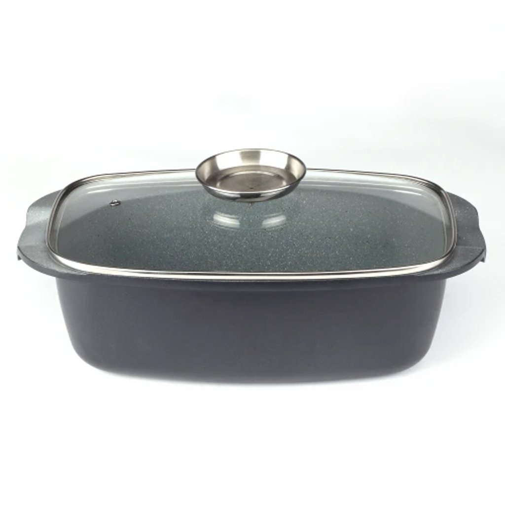 A sütőedény minőségi, nyomás alatt öntött alumíniumból készült, és háromrétegű, antibakteriális, tapadásmentes márvány bevonattal van ellátva, amely biztosítja az egészséges és kényelmes főzést. A megerősített alj egyenletes hőelosztást tesz lehetővé, a kiváló hővezetésnek köszönhetően pedig a hő gyorsabban oszlik el.