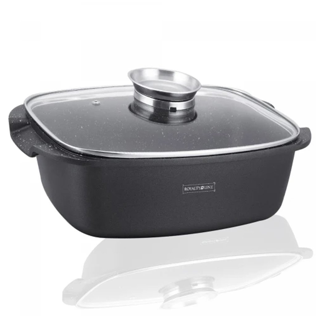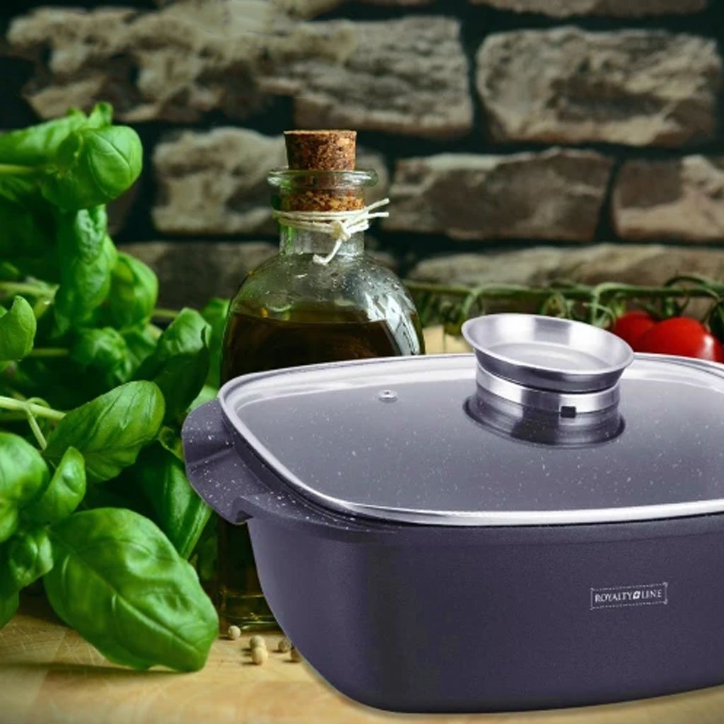 A sütőedény minőségi, nyomás alatt öntött alumíniumból készült, és háromrétegű, antibakteriális, tapadásmentes márvány bevonattal van ellátva, amely biztosítja az egészséges és kényelmes főzést. A megerősített alj egyenletes hőelosztást tesz lehetővé, a kiváló hővezetésnek köszönhetően pedig a hő gyorsabban oszlik el.
