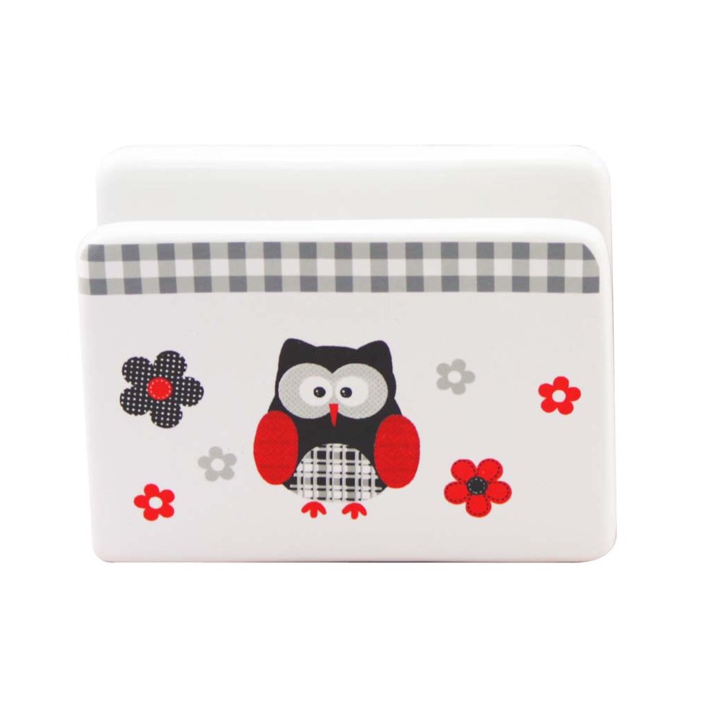 Szalvétatartó fekete bagoly motívummal, amely remekül illik az ünnepi és hétköznapi asztalterítékhez. A motívum játékosan kombinálható webáruházunk további termékeivel is.
