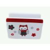 Szerezzen örömet gyermekeinek, és vásároljon az étkezőasztalra egy aranyos, piros baglyokkal díszített szalvétatartót. Színes kartondobozban szállítjuk.