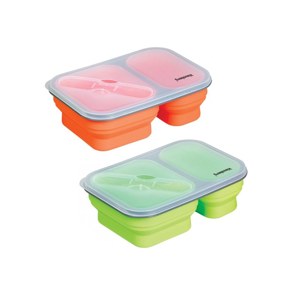 Szilikon összecsukható ételtároló doboz - ideális szendvicsekhez és gyümölcsökhöz. Az összecsukható szilikon edények innovatív ötlete ideális munkához, iskolához vagy kiránduláshoz. A teljesen szivárgásmentes fedél lehetővé teszi a félig folyékony állapotú élelmiszerek (pl. leves) tárolását és szállítását.