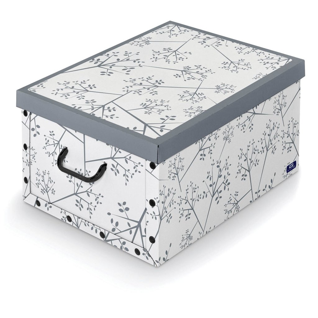 Tárolódoboz fedéllel és fogantyúkkal, Bon Ton fehér és szürke Domopak